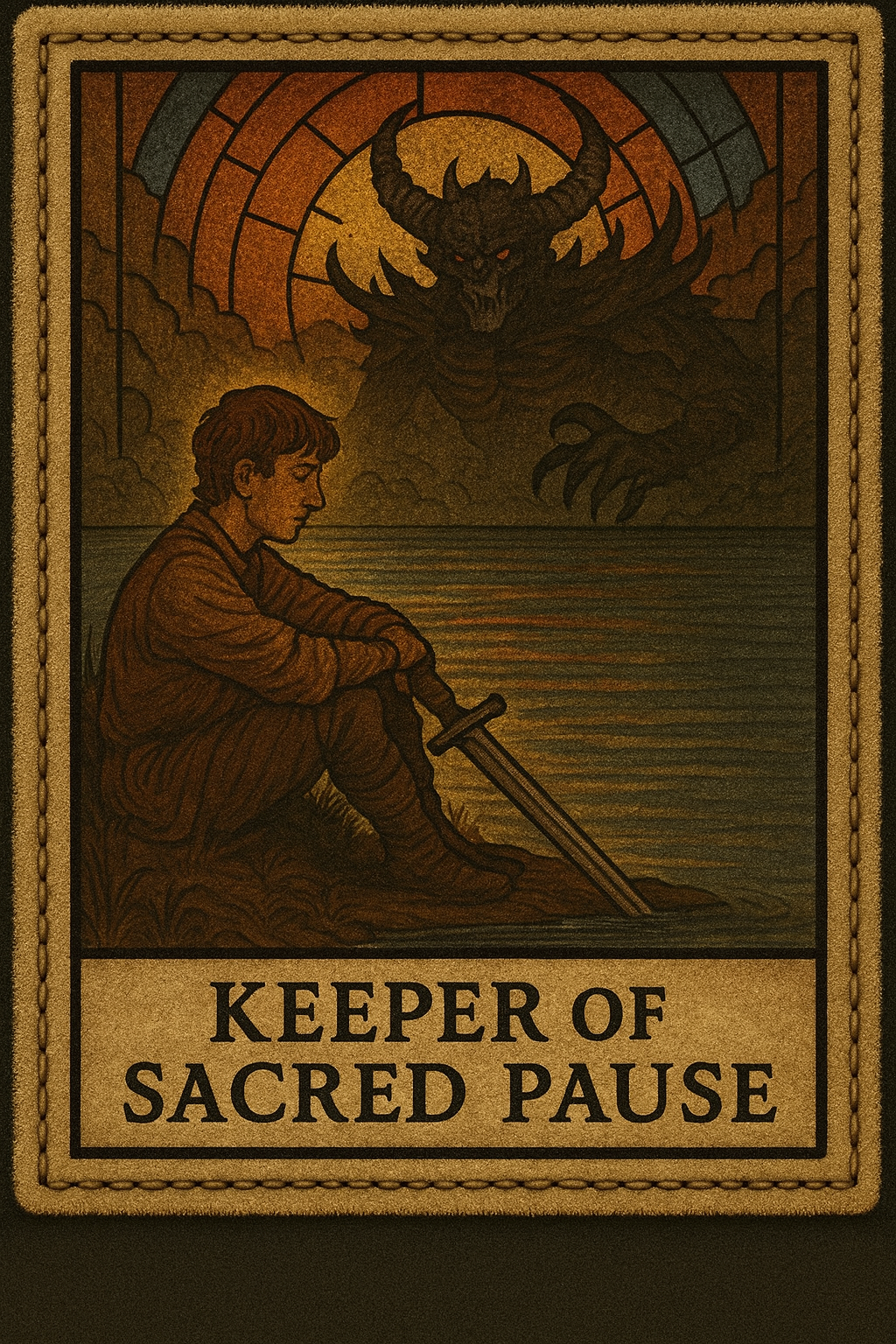 A cloth-like digital Tarot Badge: “Keeper of the Sacred Pause”